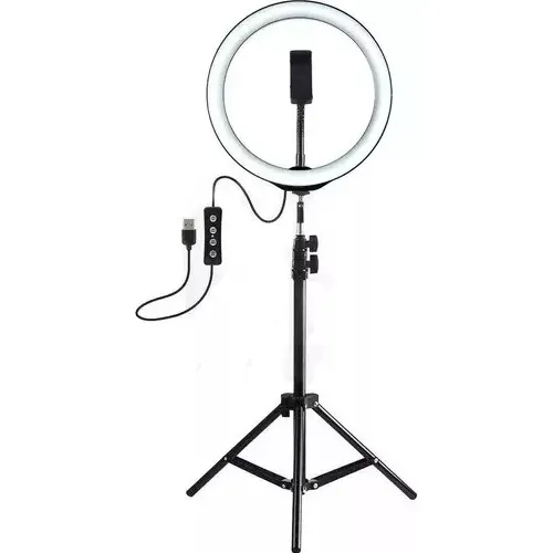 ARO LED NEGRO 3 TONOS (LUZ FRIA, CÁLIDA Y NEUTRA) SOPORTE DE PIE ALTO (2 METROS)